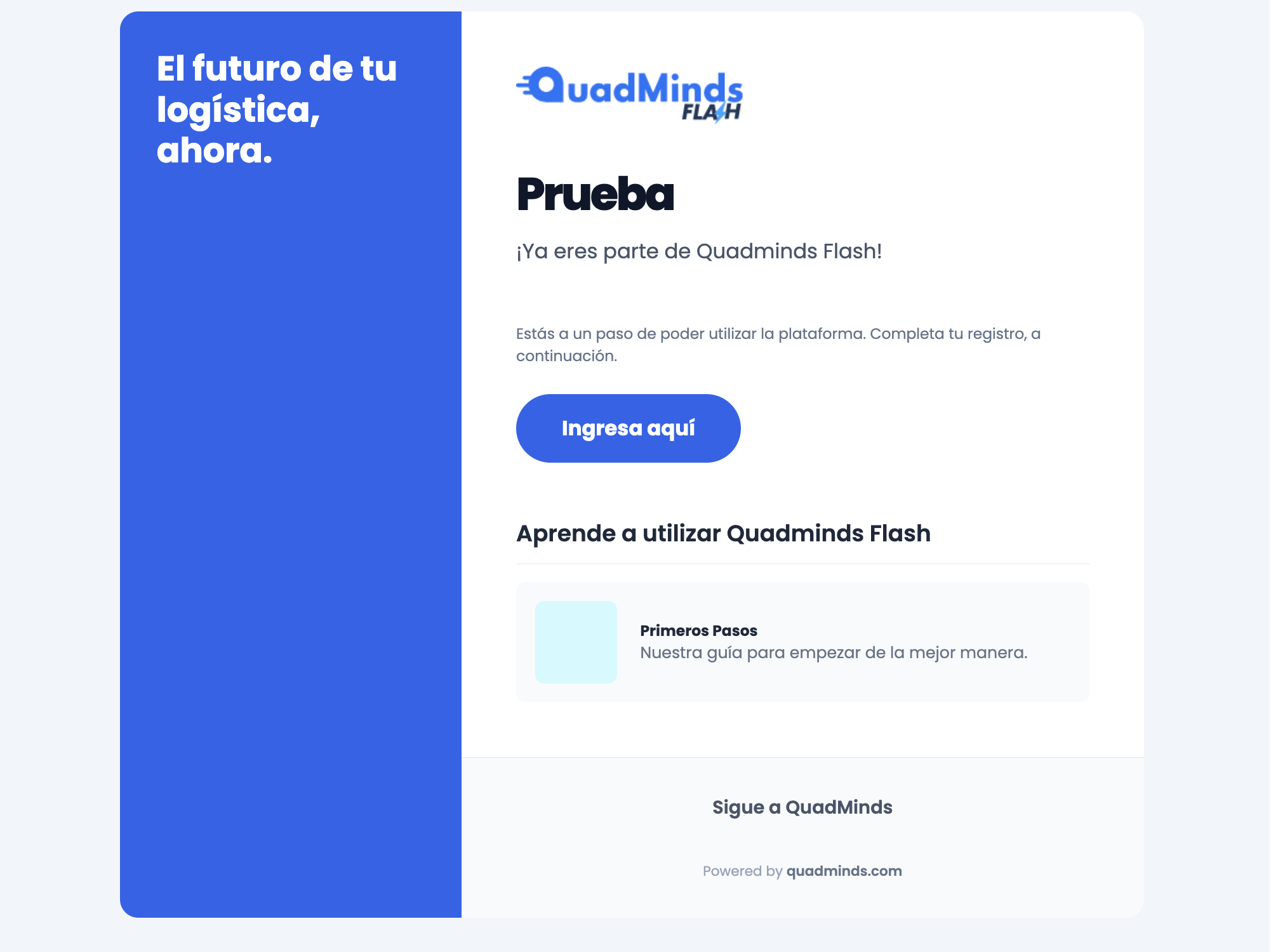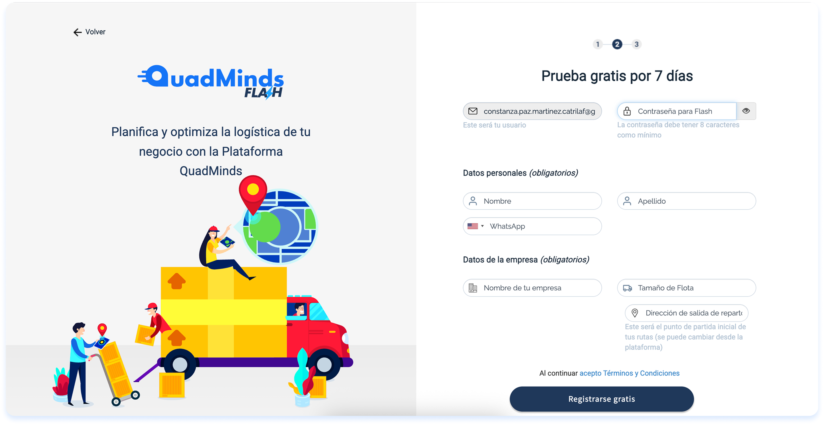 Para empezar a usar QuadMinds Flash, es necesario crear un nuevo usuario.