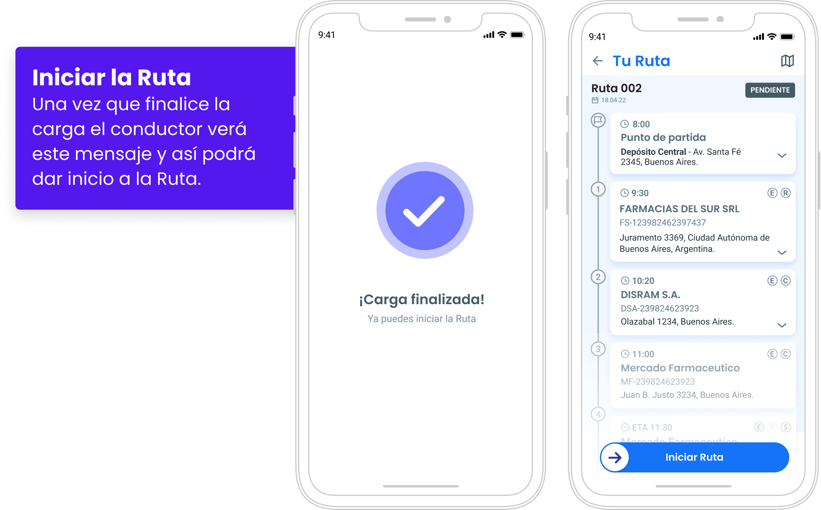 El botón de abajo cambiará por el de Iniciar Ruta: