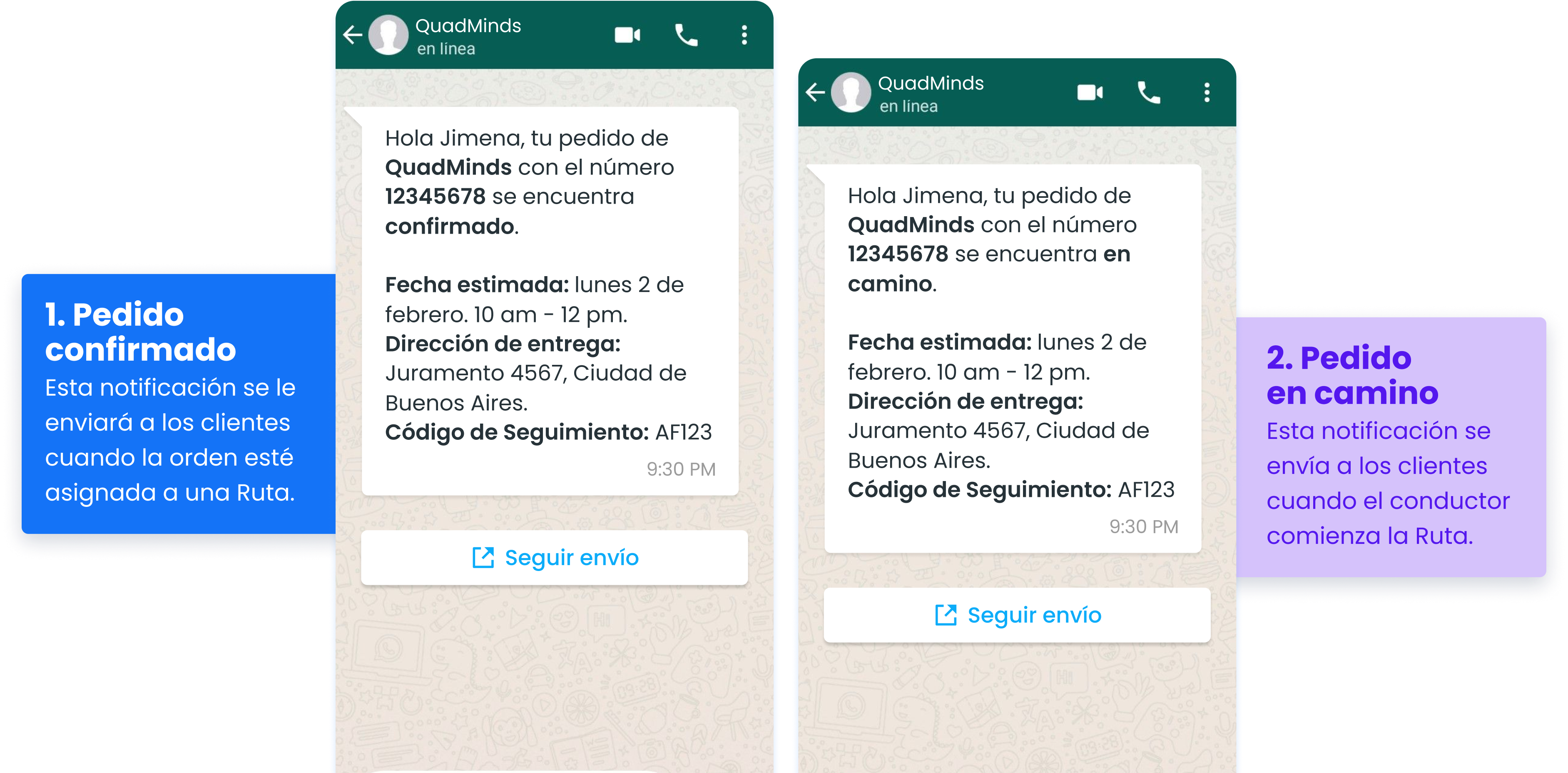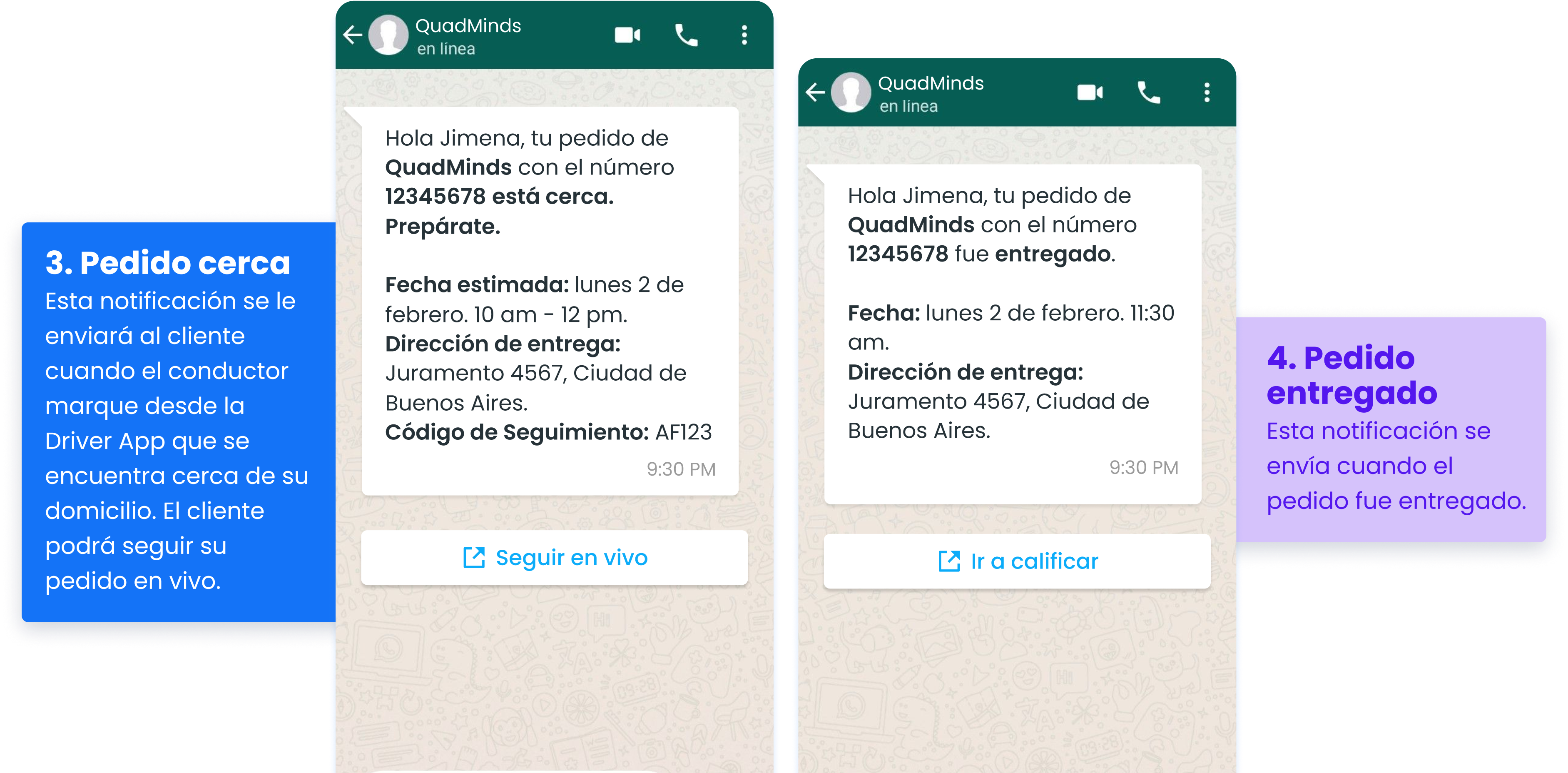 Mediante la integración de Meta con QuadMinds, podrás enviar Notificaciones por WhatsApp acerca del estado de las órdenes a los clientes.