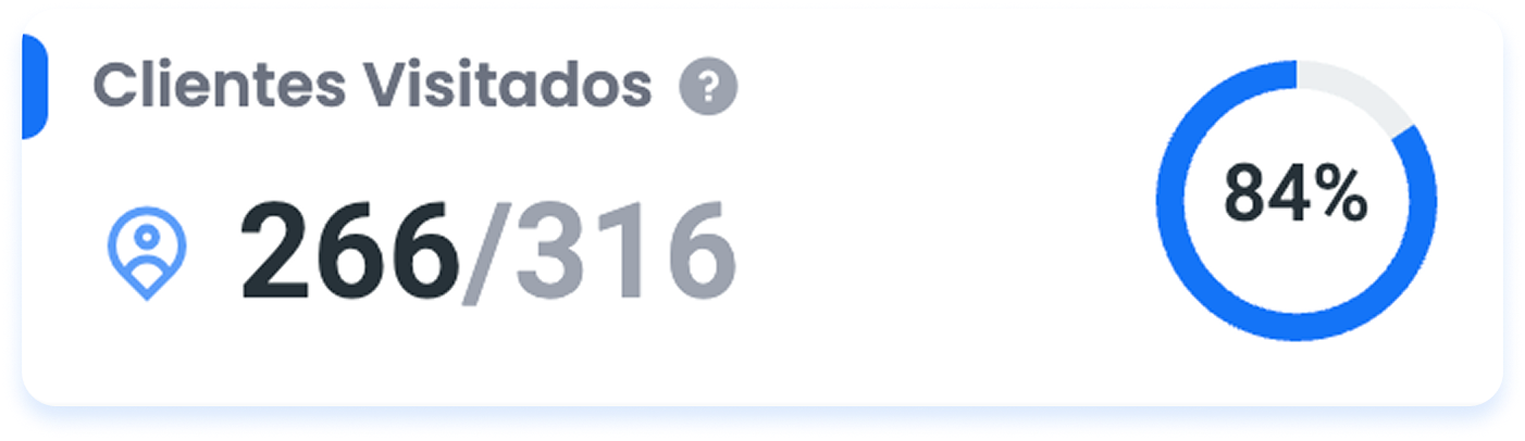 Este indicador muestra la cantidad de Clientes visitados_(en la imagen de ejemplo, 301)_ sobre la cantidad de Clientes a visitar en la fecha o rango de fechas que elegiste. (en la imagen de ejemplo, 450)