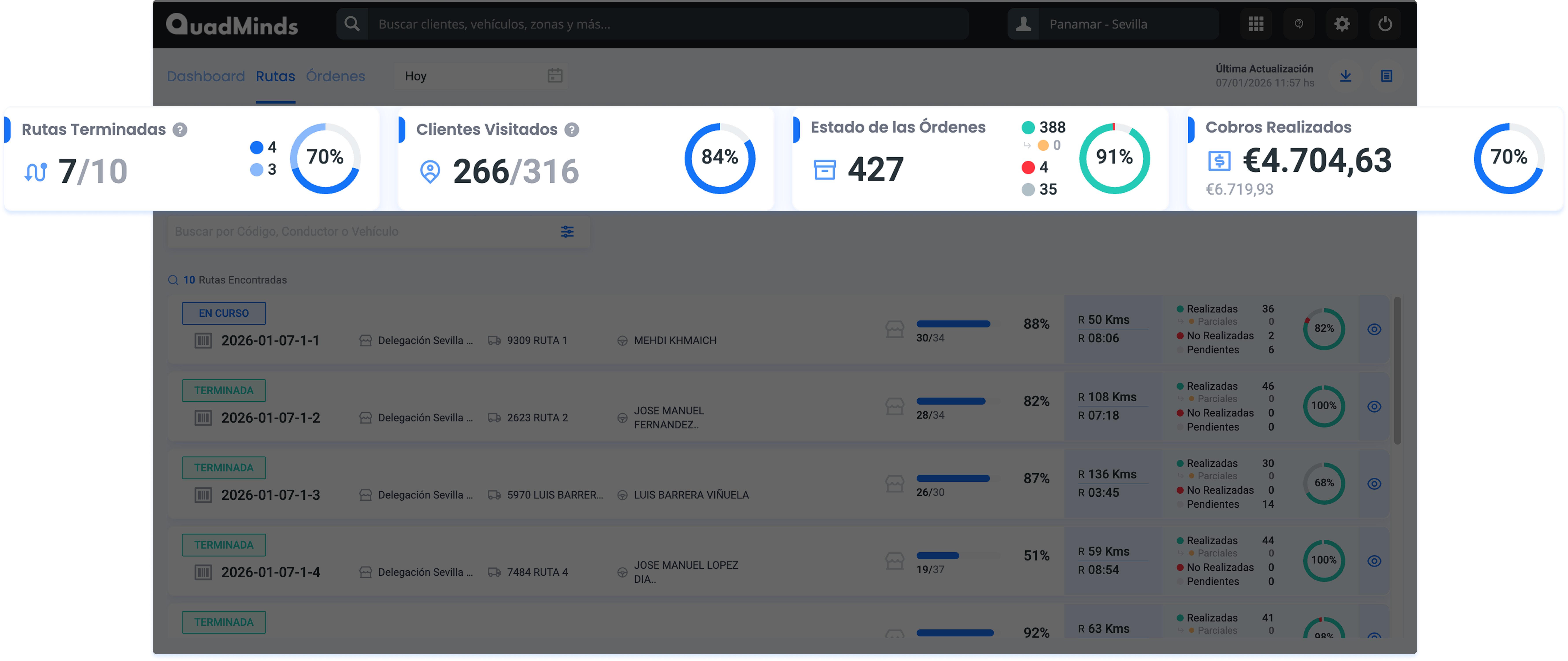 - Indicador "Rutas Terminadas"