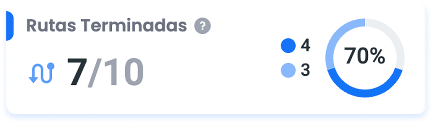 Este indicador muestra la cantidad de Rutas Terminadas (en la imagen de ejemplo, 8) sobre la cantidad de Rutas a realizar en la fecha o rango de fechas que elegiste. (en la imagen de ejemplo, 17)