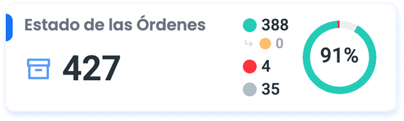 - El gráfico de porcentaje muestra el total de Órdenes Realizadas sobre el total de Órdenes a realizar en la fecha que elegiste. (en la imagen de ejemplo 402 ordenes realizadas, sobre un total de 478 ordenes)