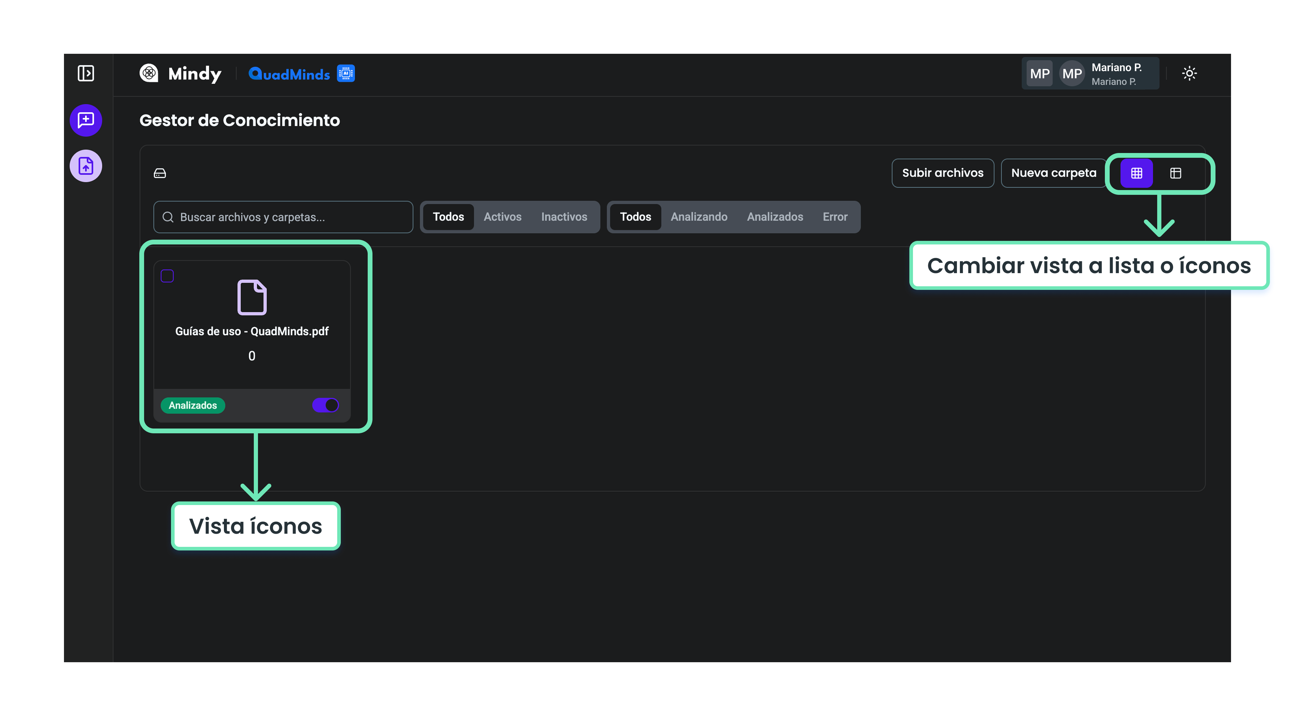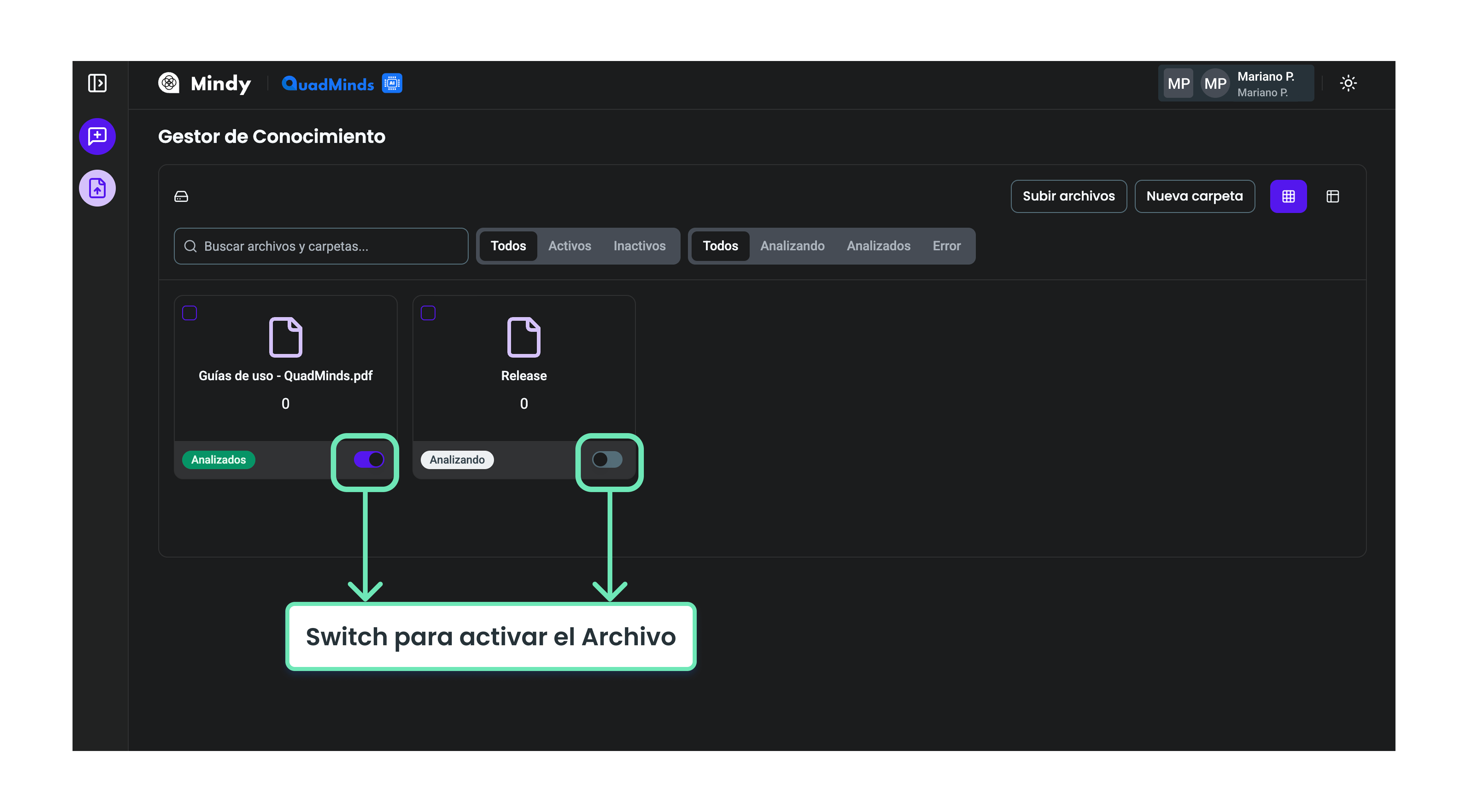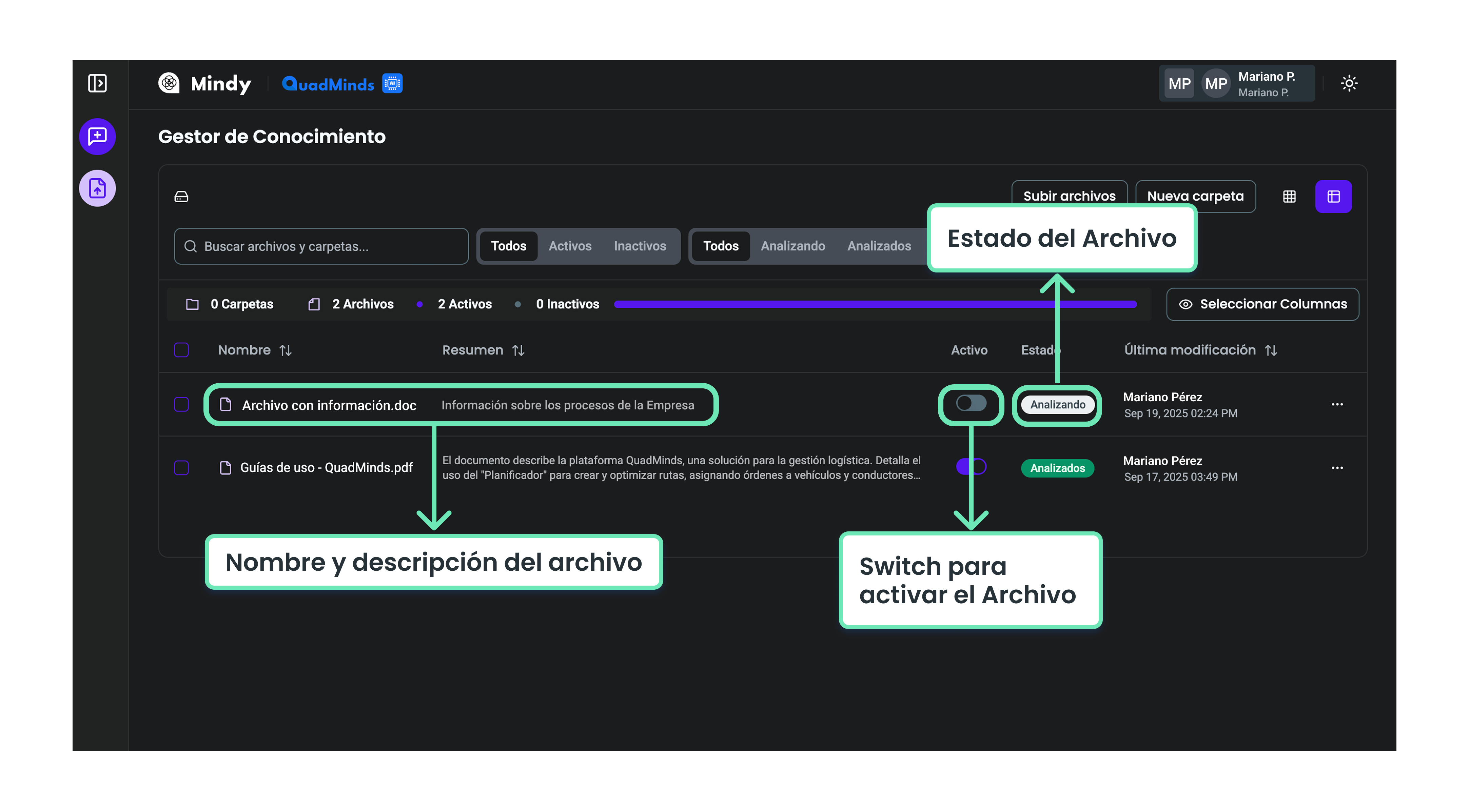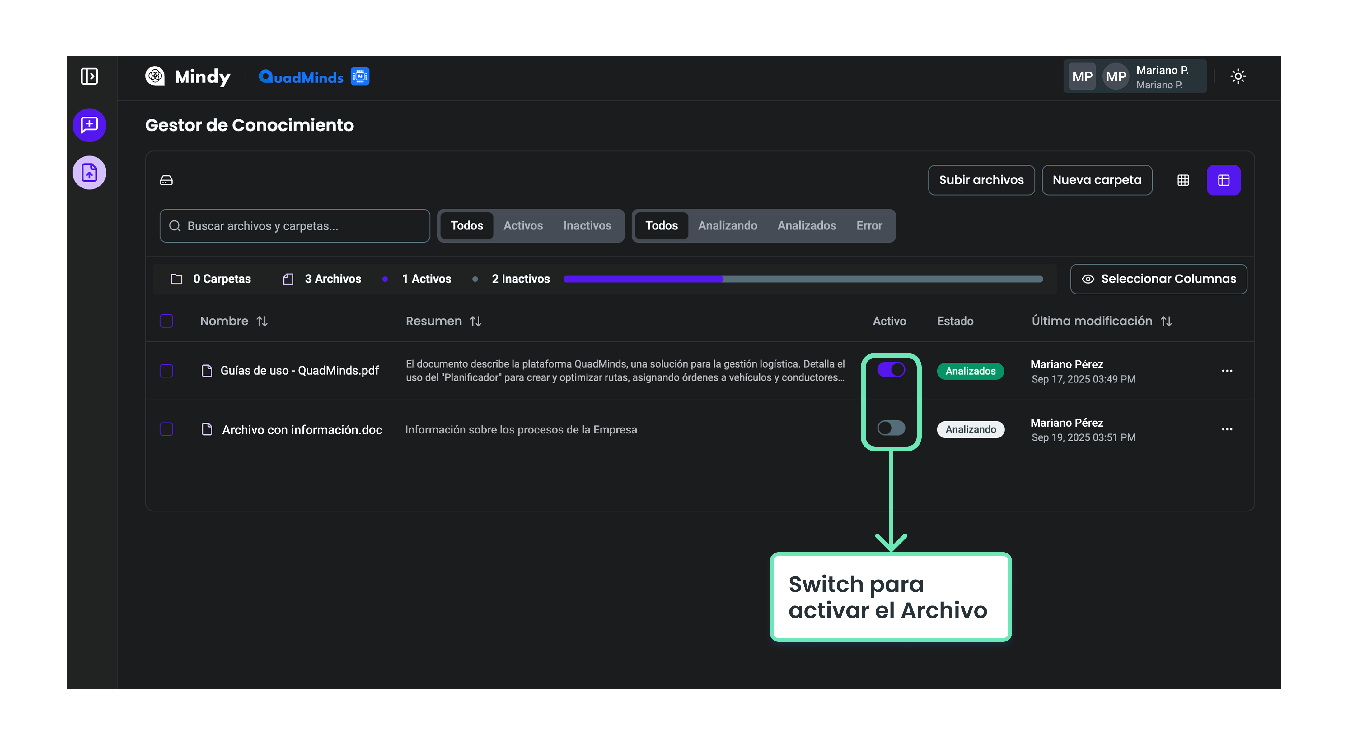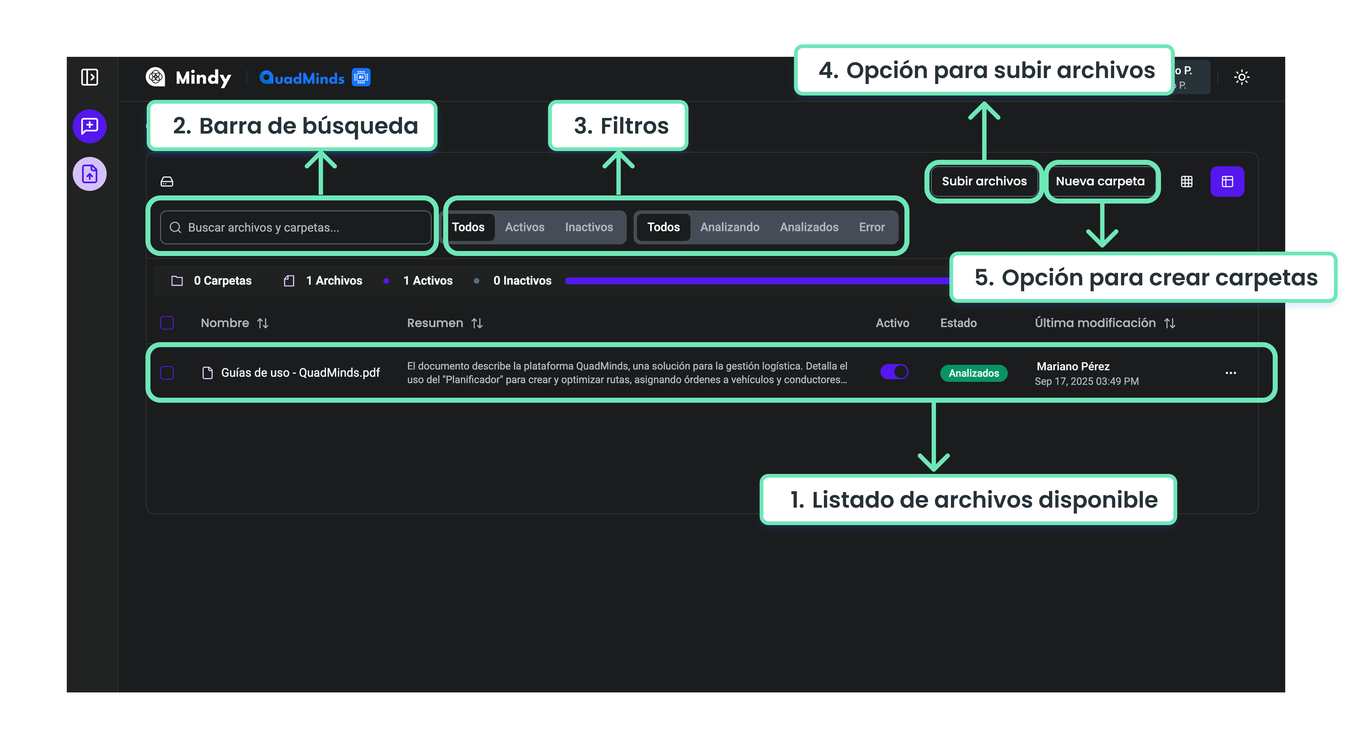 Para que los documentos estén disponibles en Mindy y puedan ser consultados, primero deben cargarse en la plataforma.
