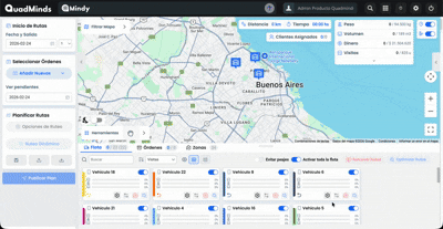 La información se va actualizando a medida que asignas ordenes a vehículos y cuando optimizas las rutas.