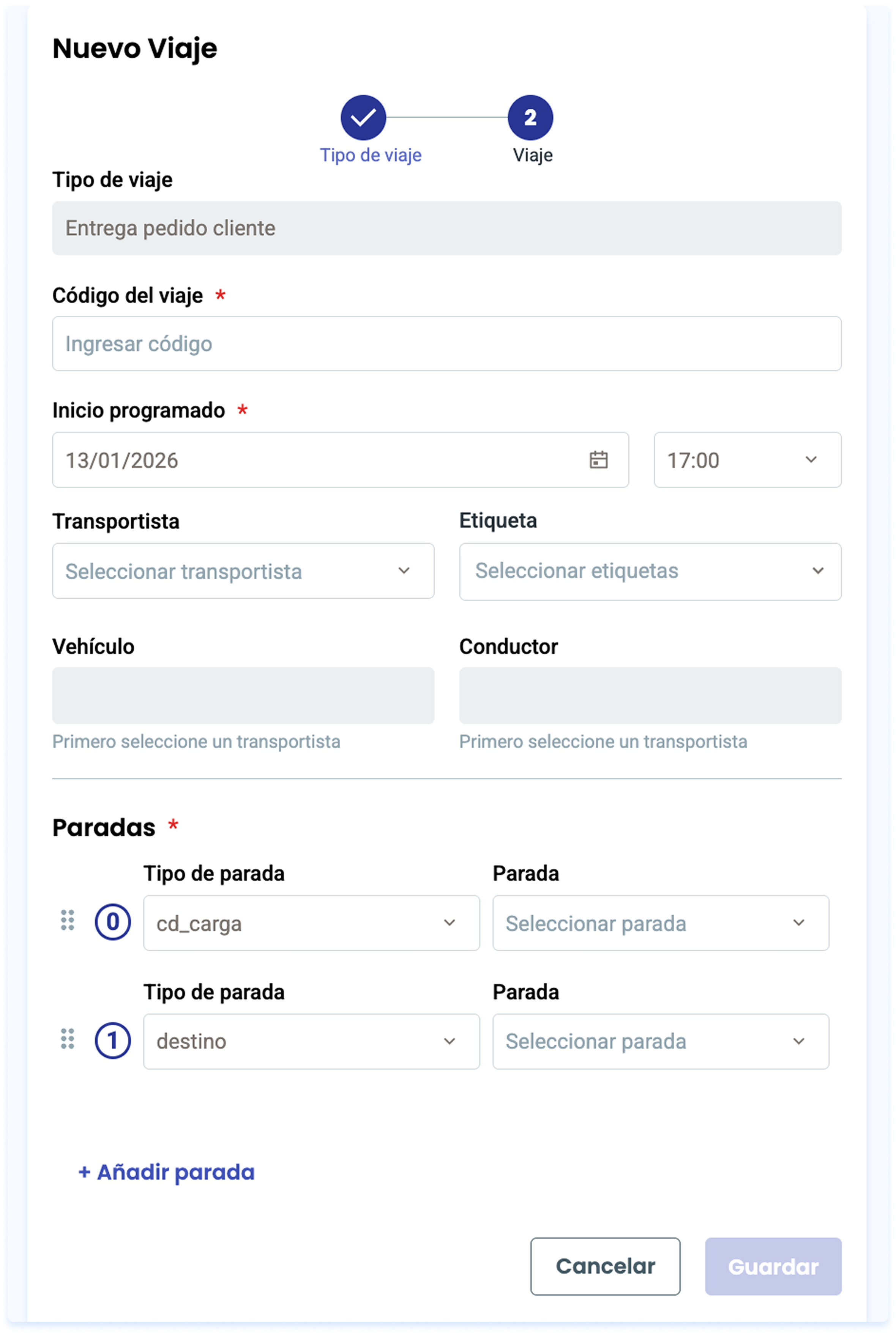 - Cargar las paradas del Viaje