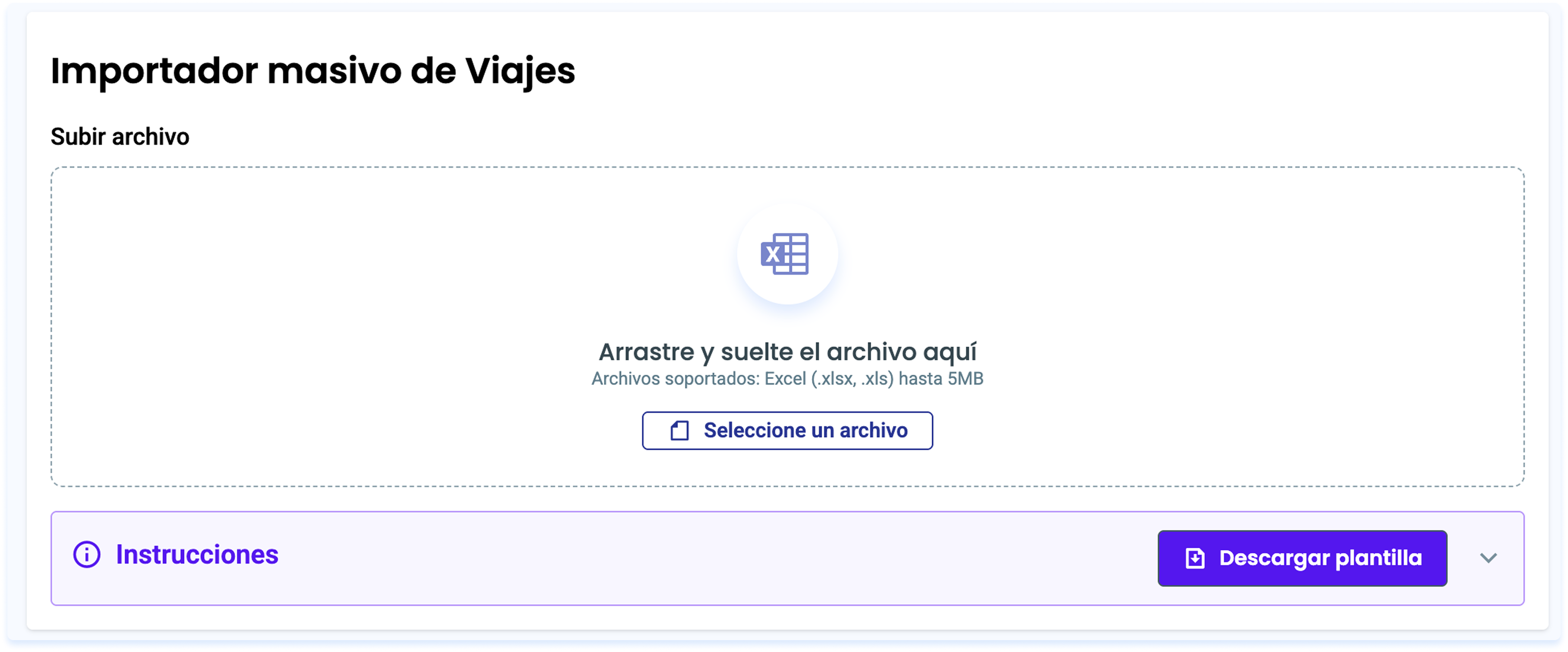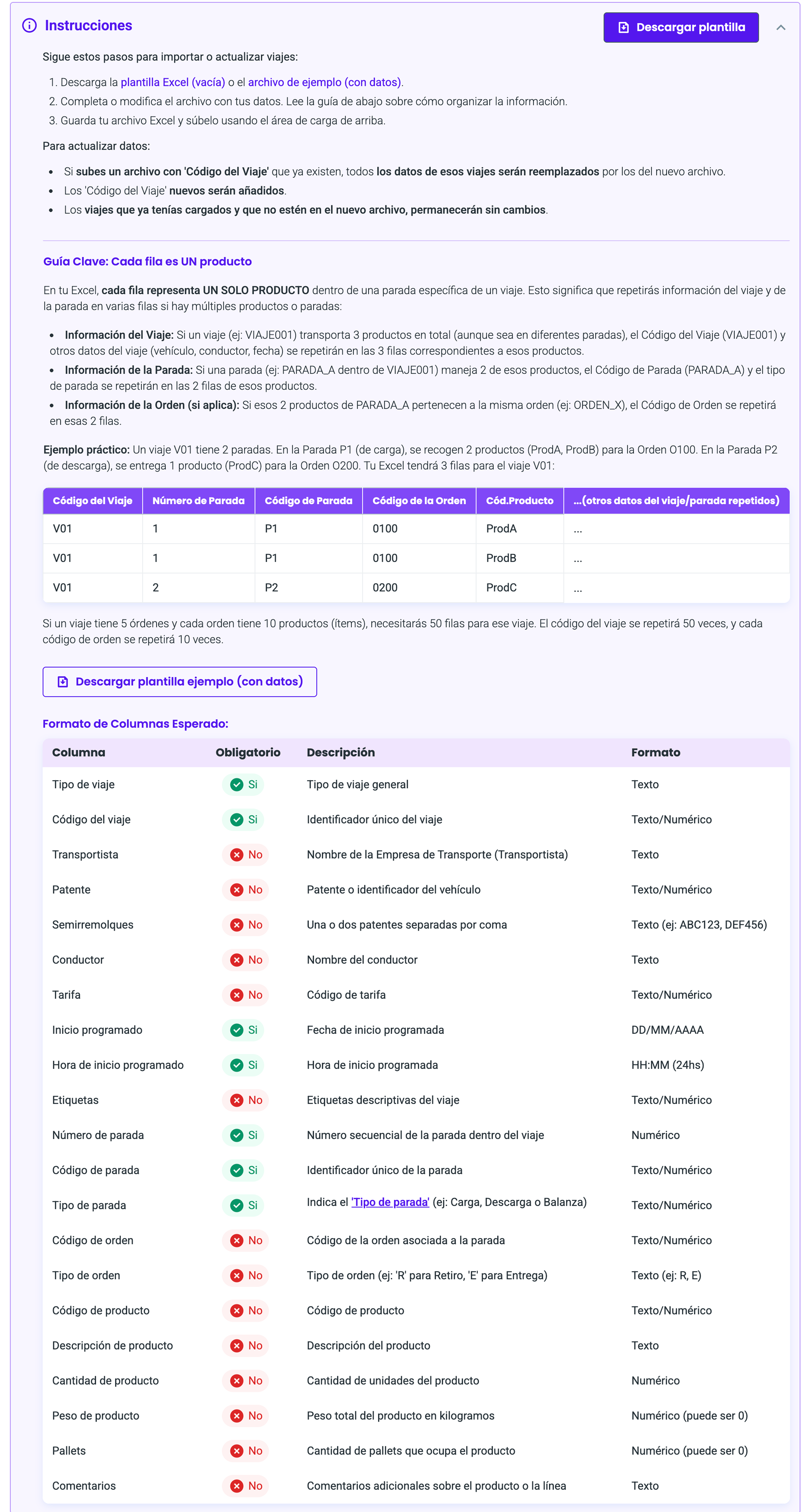 - Arrastrar un archivo de excel con la información de los viajes (archivo de ejemplo para descargar)