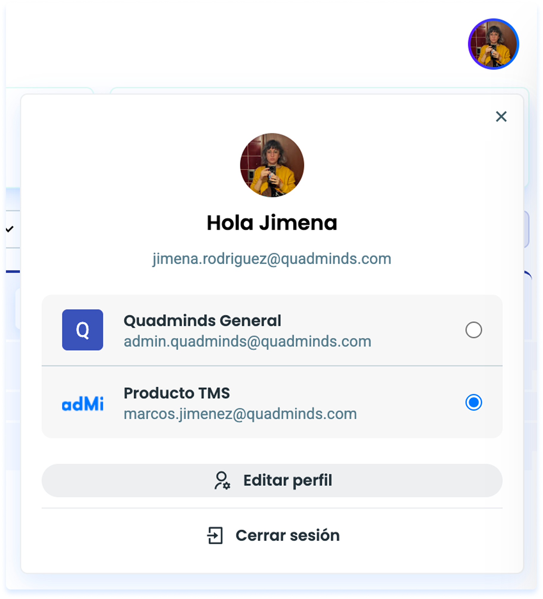 Cuando el Usuario está viendo la plataforma se puede ingresar desde la imagen de perfil que se encuentra arriba a la derecha al lado del logo de la Empresa.