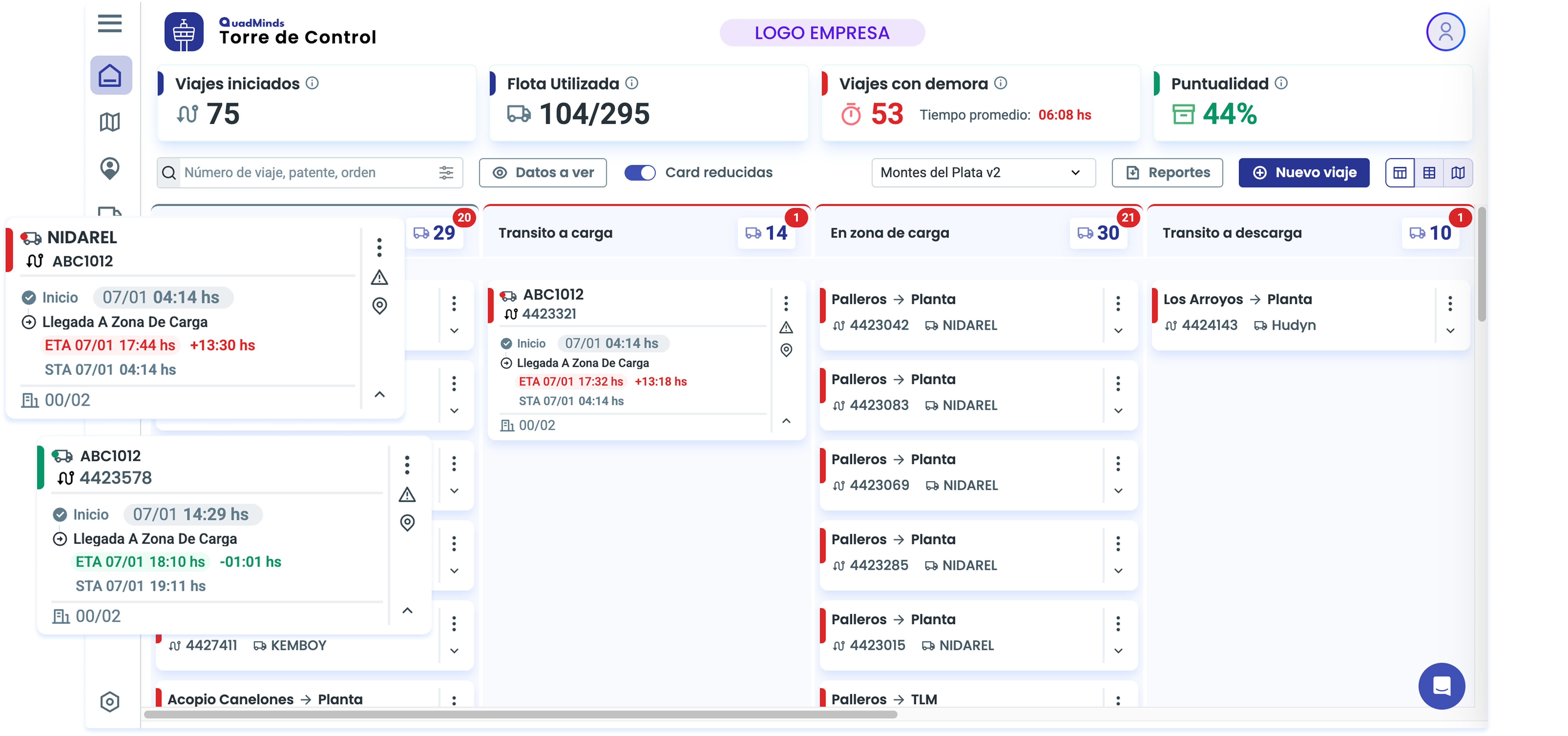 Es la Vista principal para ver los Viajes, en cuál instancia están y su estado de tiempo.