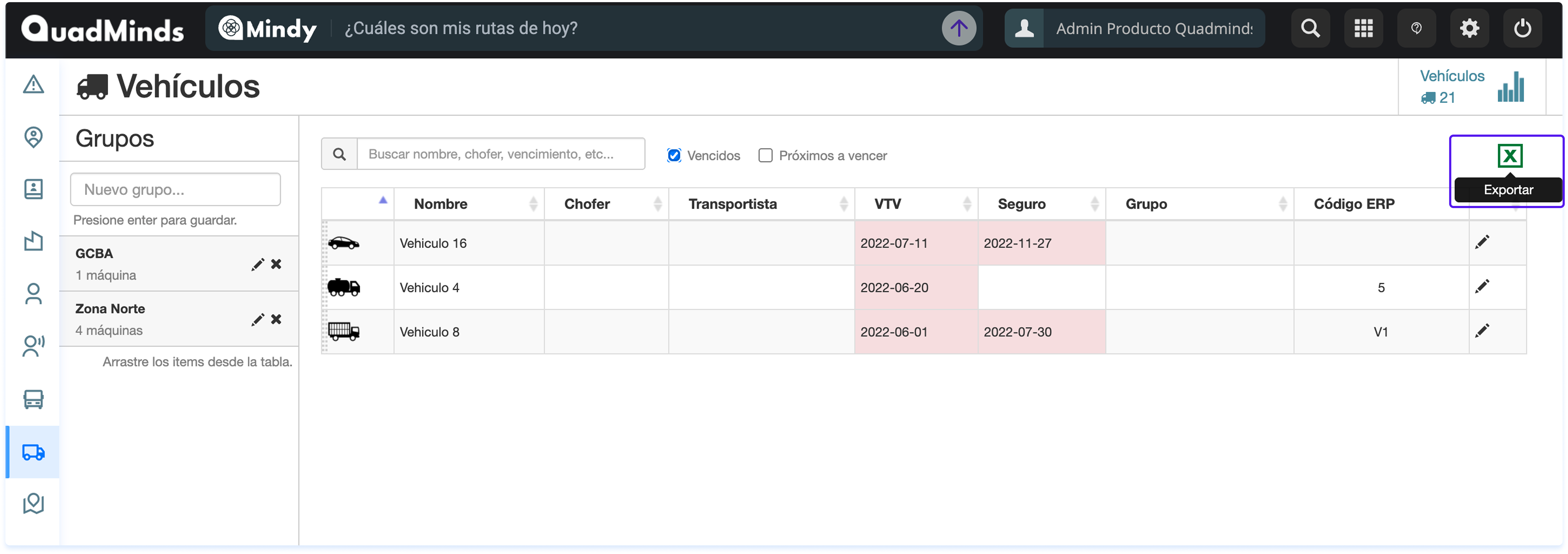Puedes exportar en un archivo Excel el listado de vehículos con sus datos cargados.